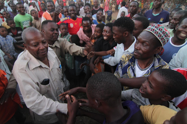 Katibu Mkuu wa CHADEMA Dkt. Slaa akizongwa na wananchi wa Kijiji cha Namahinga, Masasi aliokuwa akisalimiana nao.